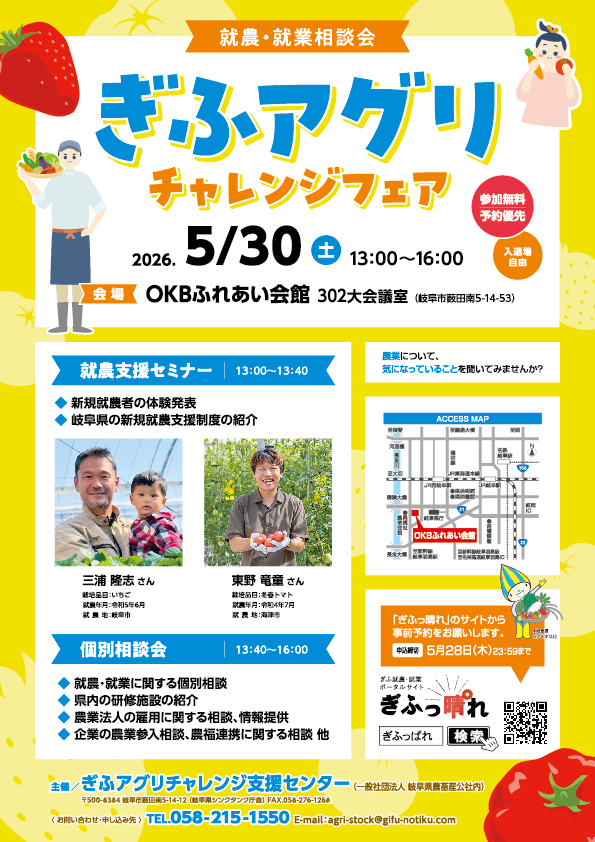 就農・就業相談会「ぎふアグリチャレンジフェア」【R8 5/30】