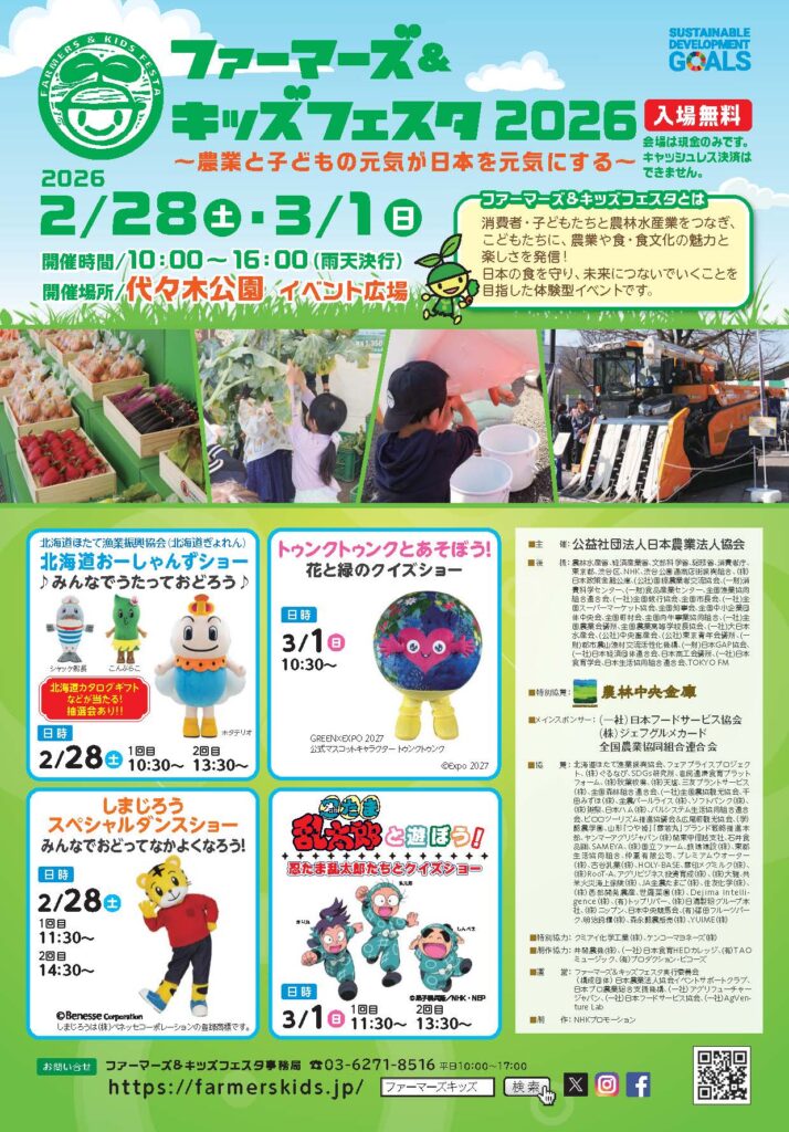 2月28日sat・3月1日sun ファーマーズ&キッズフェスタ2026 出展します