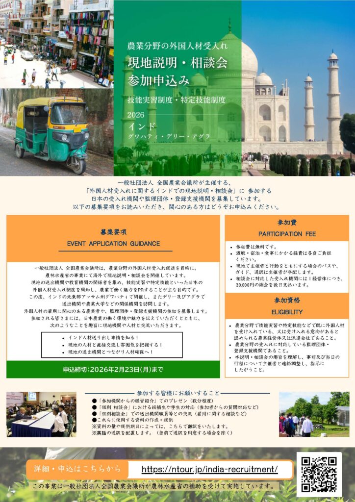 全国農業会議所主催 令和7年度農業分野の海外ジョブフェア